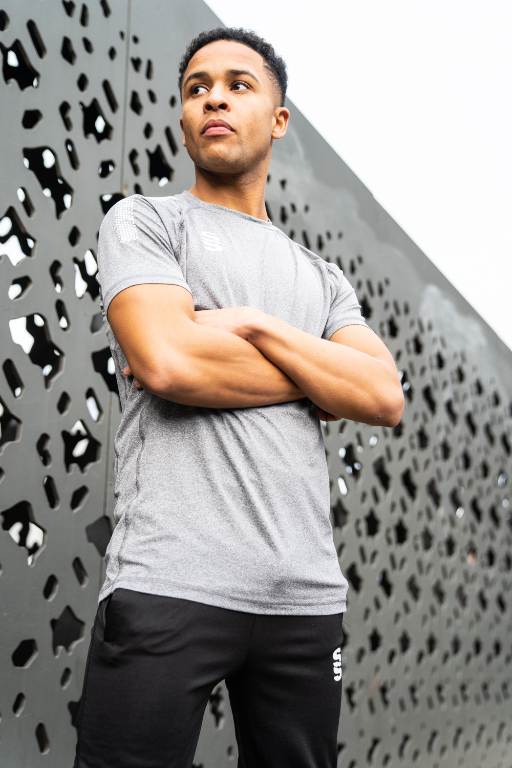 The Dual Gym T-shirt is made of high performance polyester marl fabric, with a contoured underarm side panel in breathable interlock fabric. The crew neck collar is made with modern flatlock stitching. It comes with an option for contrast colour 'dual' graphic print on both shoulders and choice of Surridge SS Logo situated on the right chest. It's super stretchy and is a regular fit, but can be worn one size down for extra fitting around a more athletic build.